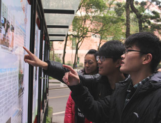 記者看到西南大學(xué)人流較大的傳媒大廣場擺放著印有實踐照片的展板,上面有團隊成員在實踐中的照片、實踐感言以及活動花絮等,而展板前均聚集了不少學(xué)生。帶隊老師李海峰對記者表示,希望能在全國高校中形成一種樂于實踐的氛圍,倡導(dǎo)大學(xué)生積極開展社會實踐。