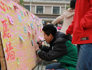 12月15日,南昌大學(xué)護理學(xué)院在醫(yī)學(xué)院新世紀廣場舉行了2013大學(xué)生社會實踐評選成果校園巡展。此次巡展共展出17塊展板,其中包括6塊獲獎優(yōu)秀團隊介紹板、6塊“愛佑童心”志愿者隊“愛佑之行”展板、3塊“愛·一起來”宣傳海報板、一塊留言板和一塊心愿墻展板。展板形象展現(xiàn)了“愛佑童心”三下鄉(xiāng)團隊實踐全過程,從前期的緊張準備、中期實踐到后期的精心總結(jié),將“愛佑童心”六支實踐隊伍的活動詳細地展現(xiàn)給大家。最后,參觀者也在心愿墻為先心患兒寫下最真摯的祝福,“愛佑童心,加油”“祝愿先心患兒早日康復(fù)”“藍天白云之下,我們與愛佑同行”等等祝福心愿擠滿心愿墻。