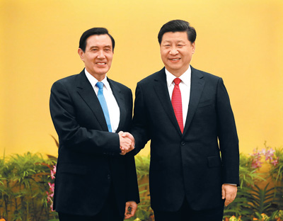 11月7日下午,中共中央總書記、國家主席習(xí)近平同臺(tái)灣方面領(lǐng)導(dǎo)人馬英九在新加坡會(huì)面,就進(jìn)一步推進(jìn)兩岸關(guān)系和平發(fā)展交換意見。新華社記者蘭紅光攝