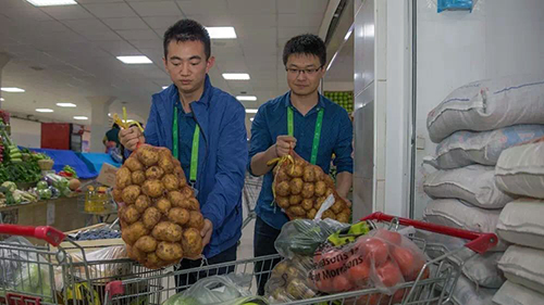 兩位“90后”大廚已經(jīng)來阿斯塔納快3個月了,每天不是在做飯就是在送飯、采購的路上。每周都要去菜市場采購兩三次,一是因為數(shù)量龐大,二是保障食材的新鮮度。剛來阿斯塔納的時候,兩個人到處奔走尋找適合中餐的原材物料,幾乎跑遍了阿斯塔納大大小小的農(nóng)貿(mào)市場和超市,很多食材和調(diào)味品甚至要從阿拉木圖和周邊城市調(diào)配。綜合比較之下,最終選定了郊區(qū)的一家農(nóng)貿(mào)超市,因為這里的食材較為新鮮、價錢也適中,只是路途遙,每次往返開車都要將近2個小時。