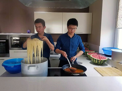 于是,趕緊從中國館運營總監(jiān)劉芳那里了解到關于大廚的一些信息。劉芳總監(jiān)介紹到,青島世園集團從中標本屆阿斯塔納世博會運營商開始,就在琢磨如何做好志愿者的保障?紤]到志愿者國外生活經(jīng)驗不足,加上中外飲食差異較大,便決心提供良好的餐飲保障,讓志愿者展現(xiàn)最良好的精神狀態(tài)和工作狀態(tài)。隨后,從青島世園集團旗下的五星級酒店——世園寒軒酒店精心挑選兩名廚藝精湛的廚師駐守在阿斯塔納,專門保障志愿者的飲食。來哈之前就對兩位廚師進行過多次業(yè)務培訓,來哈之后根據(jù)當?shù)貙嶋H情況又制定采購標準等一系列管理制度,并積極關注志愿者需求,不斷改進飲食,確保切實為志愿者們提供最可口、最可心的飯菜,志愿者們對兩位大廚的廚藝可是贊不絕口。