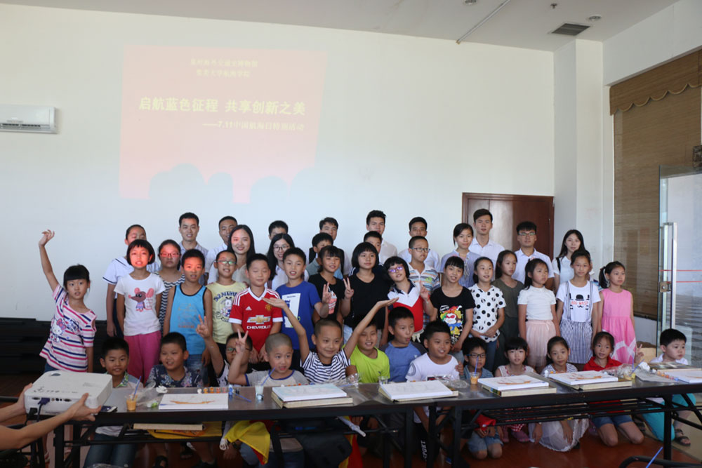 實(shí)踐隊(duì)與泉州海外交通史博物館共同開展了“啟航藍(lán)色征程,共享創(chuàng)新之美——7.11中國航海日”特別活動(dòng),向30位小朋友講解航海小知識(shí),介紹古老的旗語和莫爾斯電碼等!跋M覀兊暮胶N幕軌騻鞑コ鋈,從娃娃抓起” 隊(duì)長胡栩禎說。