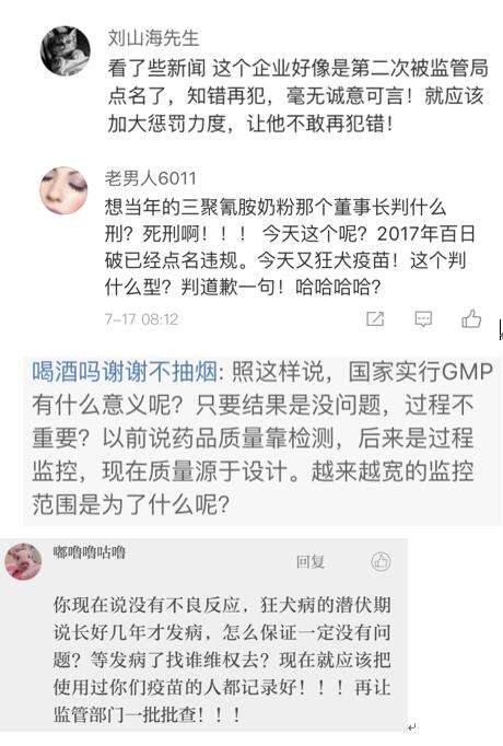 據(jù)長生生物年報(bào)顯示,2017年長春長生公司凍干人用狂犬疫苗簽發(fā)數(shù)量為355萬人份,占據(jù)國內(nèi)市場(chǎng)的近四分之一。對(duì)于有“前科”、市場(chǎng)占有率又非常高的疫苗生產(chǎn)商,網(wǎng)友心存疑慮。網(wǎng)友“糊涂泥塵”說:我可以相信“本次飛行檢查的所涉及的產(chǎn)品均有效控制”,那么其他批次都是符合“規(guī)范”?這次飛行檢查外的產(chǎn)品都確定合格?