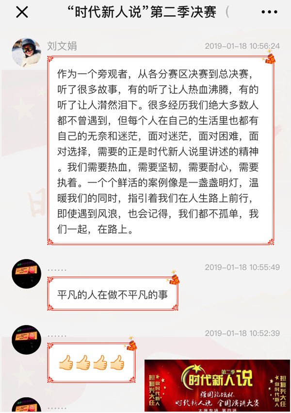 “每個(gè)人在生活里也都有無(wú)奈,面對(duì)迷茫,面對(duì)困難,需要的正是時(shí)代新人說(shuō)里講述的精神!本W(wǎng)友劉文娟留言說(shuō)。