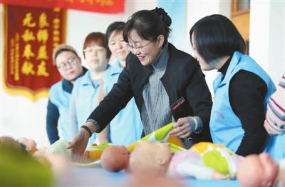 職業(yè)培訓學校老師在給學員講解育嬰知識。(來源:新華社記者 王曉 攝)