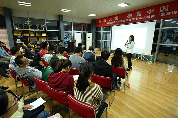 錄制前的電話初采時,聽聞李婧竟是比記者僅大一歲的博士生,我訝異不止。清脆活潑的聲音,大方清晰的談吐,正是一場場宣講留在她身上的印記,也帶著遠(yuǎn)遠(yuǎn)超出她這個年紀(jì)的穩(wěn)重和堅定。從2017年作為第一批宣講人加入西安交通大學(xué)學(xué)生微宣講團(tuán)開始,從山村小學(xué)到重點高校,從工廠車間到領(lǐng)軍企業(yè),從邊防軍營到繁華都市,李婧的足跡遍布22個省(市、自治區(qū)),參與宣講工作。