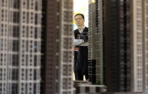 湖北省武漢市一名看房者在觀看樓盤模型。新華社記者 程敏 攝